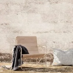 Der Desert Loungestuhl Gestell Kaschmir wurde für die Marke ferm LIVING entworfen. Wem Umweltschutz ein Anliegen ist, lehnt sich in der bequemen Sitzgelegenheit mit ruhigem Gewissen zurück. Der Stoff des Desert Loungestuhl Gestell Kaschmir besteht nämlich aus 55 recycelten Kunststoffflaschen.