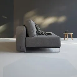 Hinter der schlichten und grafisch wirkenden Silhouette verbirgt sich ein ebenso funktionales wie bequemes Möbelstück, das bei jeder Art der Nutzung für ein optimales Maß an Komfort sorgt. Zwei lose und sehr große Rückenkissen machen das Schlafsofa, das über eine Sitzhöhe von angenehmen 40 cm bei einer Tiefe von 98 cm verfügt, zu einer sehr bequemen Sitzgelegenheit. Angelehnt sind die Kissen an den hochgestellten hinteren Teil des Sofas. Diese Anordnung verhilft dem Schlafsofa zu einem harmonisch leichten Gesamteindruck, der zu nahezu jedem Einrichtungsstil passt.