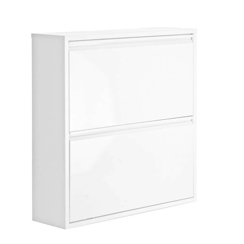 Der Schuhschrank wird aus pulverbeschichtetem Stahl hergestellt und dient gleichzeitig als Ablagefläche, Sideboard für Eingangsbereiche oder als Telefontisch im niedrigen Double mit 2 Klappfächern .