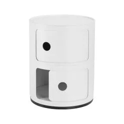 Optisch unterscheidet sich der Componibili 2 Container matt dank der runden Form stark von klassischen eckigen Containermodellen. Die runden Griffaussparungen wirken elegant und ermöglichen ein einfaches Herausziehen und Hineinschieben der Schubladen. Den Componibili 2 Container matt gibt es in verschiedenen Farben. Mit nur etwa 2kg ist der Container sehr leicht und kann schnell von A nach B verschoben werden. Die Höhe beträgt bei diesem Modell 40cm und der Durchmesser 32cm. Componibili 2 Container matt sind nicht nur innen einsetzbar, sondern auch für den Außenbereich geeignet.