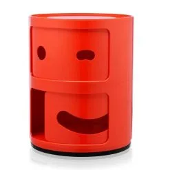 Der verspielte Componibili Smile Container wurde von dem Designer Fabio Novembre als Tribut der talentierten Anna Castelli Ferrieri exklusiv für die Marke Kartell entworfen. Der stabile Componibili Smile Container ist aus robustem ABS gefertigt. Das Produkt ist mit einer Greenguard-Zertifizierung versehen und aus einem recyclingfähigen und nachhaltigen Kunststoff gefertigt. Die fröhliche Neuinterpretation des klassischen Entwurfs begeistert mit dem ironischen Zugang zum Design. Der 40cm hohe Container stellt ein praktisches Möbelstück dar, das sowohl im Innen- als auch im Außenbereich seinen perfekten Platz findet. Das Augenmerk des Möbelstücks liegt auf der Gestaltung der beiden Fächer, die mit einem Augenzwinkern in Ihren vier Wänden für Ordnung sorgen. Die Handgriffe, die in Form von Löchern in der Front ausgeführt sind, erinnern an zwinkernde oder lachende Smily-Gesichter, die schnell für gute Laune sorgen. Der zylinderförmige Componibili Smile Container findet seinen Platz leicht und setzt zudem einen aufregenden Blickfang in einem eklektischen Interieur. Sie können das Aufbewahrungsmöbel mit zwei praktischen Ausziehfächern als fröhlichen Akzent einsetzen, der das Aufräumen viel unterhaltsamer macht. Auch auf der Terrasse oder im Garten freuen Sie sich über den zusätzlichen Platz, der Ihnen mit dem 32cm Durchmesser großen Container geboten wird.