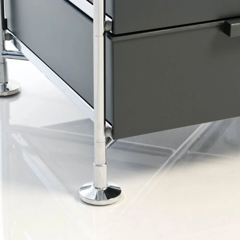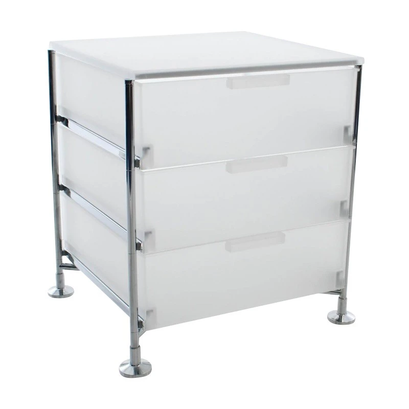 Das Gestell des vielseitig verwendbaren Mobil 3 Container mit Füßen besteht aus verchromtem Stahl, die Boxen sind aus PMMA-Kunststoff gefertigt. Die drei Behälter sind in verschiedenen Farben und durchsichtig oder blickdicht erhältlich. Die Maße des praktischen Containers betragen 49cm in der Breite, 55cm in der Höhe und 47,5cm in der Tiefe. Das Gewicht beträgt 15kg. Ob im Bastelraum, im Büro oder im Wohnbereich, der Mobil 3 Container mit Füßenvon Kartellist ein unverzichtbarer Einrichtungsgegenstand, der schnell Ordnung in das tägliche Leben bringt und reichlich Stauraum bietet. Robustheit, Langlebigkeit und seine formschöne Optik sind weitere Argumente, die für den Mobil 3 Container mit Füßensprechen. Die Reinigung kann einfach mit einem feuchten Tuch vorgenommen werden.