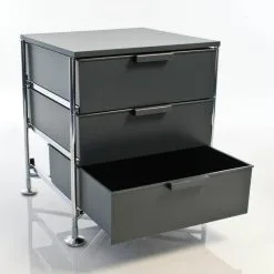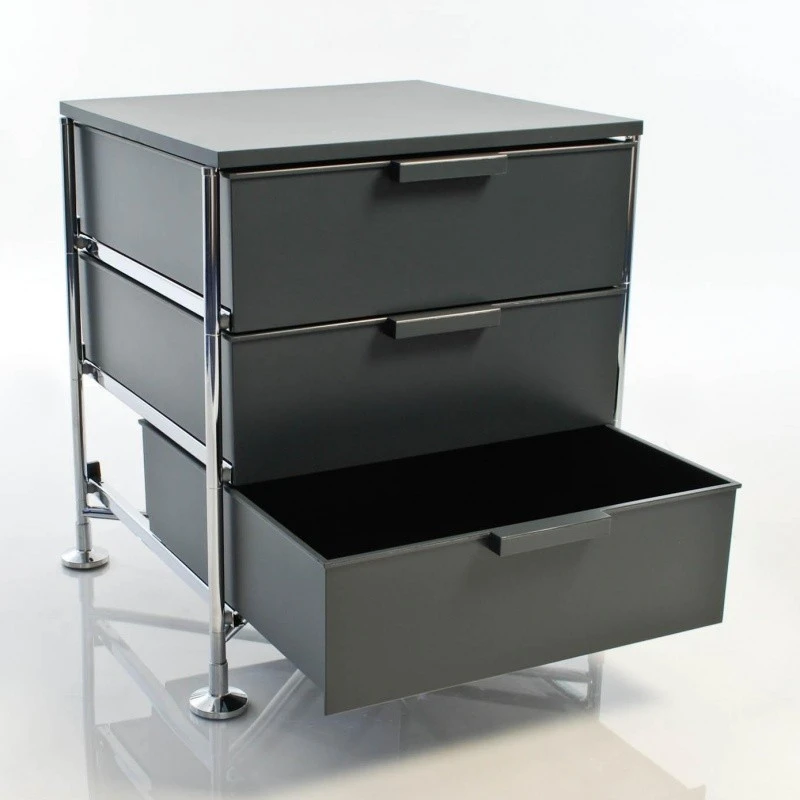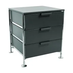 Der Mobil 3 Container mit Füßen wurde von Glen Oliver Löw und Antonio Citterio für Kartell entworfen. Das deutsch-italienische Architektenduo lernte sich in den 1980er-Jahren in Mailand kennen. Zusammen gestalten sie unter anderem die Kollektion aus mobilen Containern. Der mehrfach prämierte Löw diplomierte in Wuppertal im Fach Industriedesign und erhielt in Mailand den Titel Master of Design. Citterio betreibt in der lombardischen Hauptstadt sein eigenes Architekturstudio und lehrt an verschieden Universitäten in Italien und der Schweiz Architektur und Design.