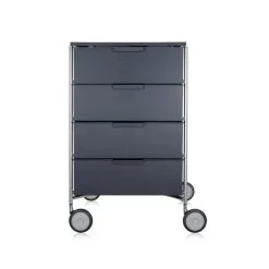 Der Mobil 4 Container mit Rollen wurde von Antonio Cittero und Oliver Löw für die Marke Kartell entworfen. Er gehört zu einer Kollektion praktischer Aufbewahrungsschränke, die sich durch Funktionalität und Ästhetik auszeichnen. Genau diese Merkmale brachten dem Modell im Jahr 1994 den renommierten Designerpreis Compasso D’Oro ein. Dank seines zeitlosen Designs lässt es sich mit jedem Stil kombinieren.