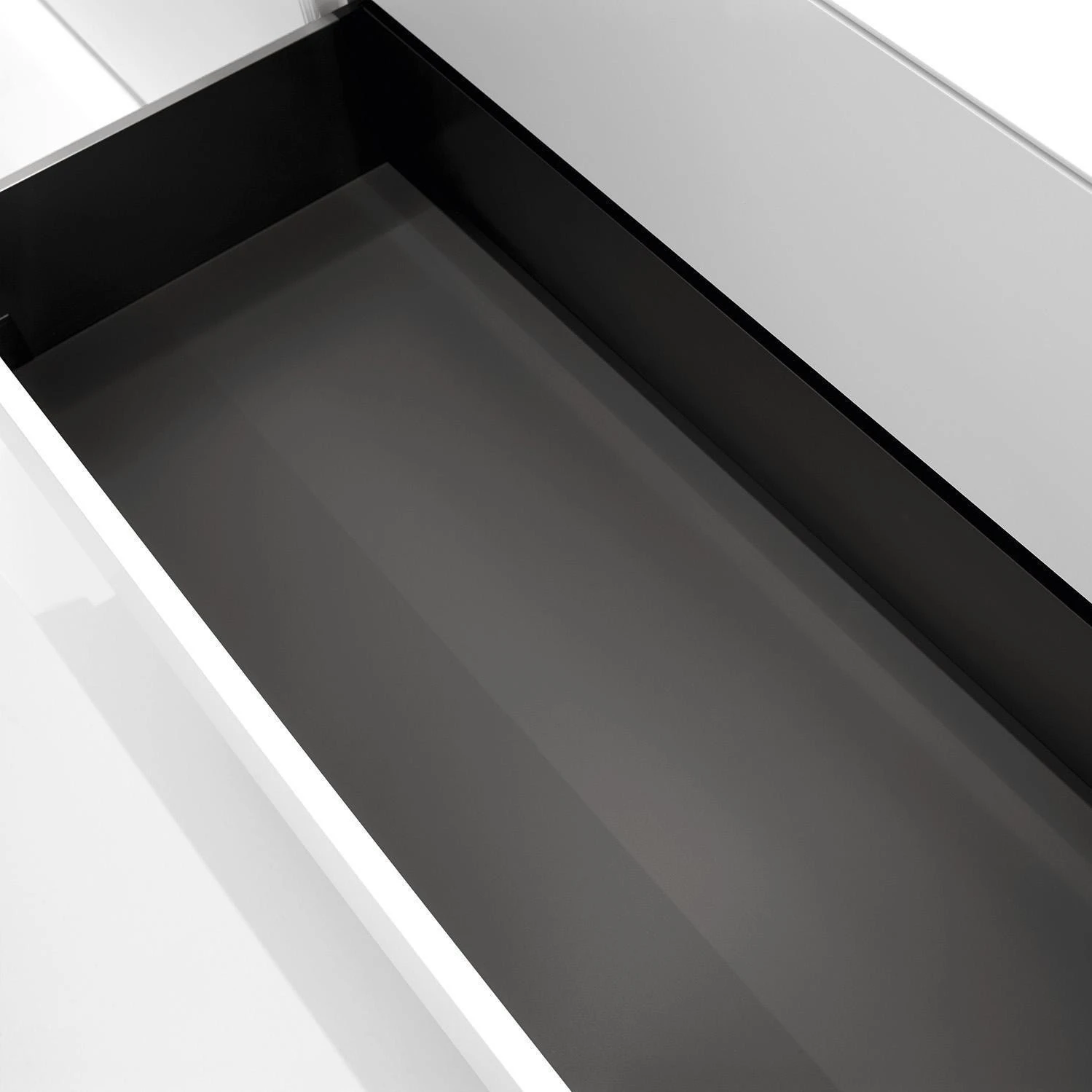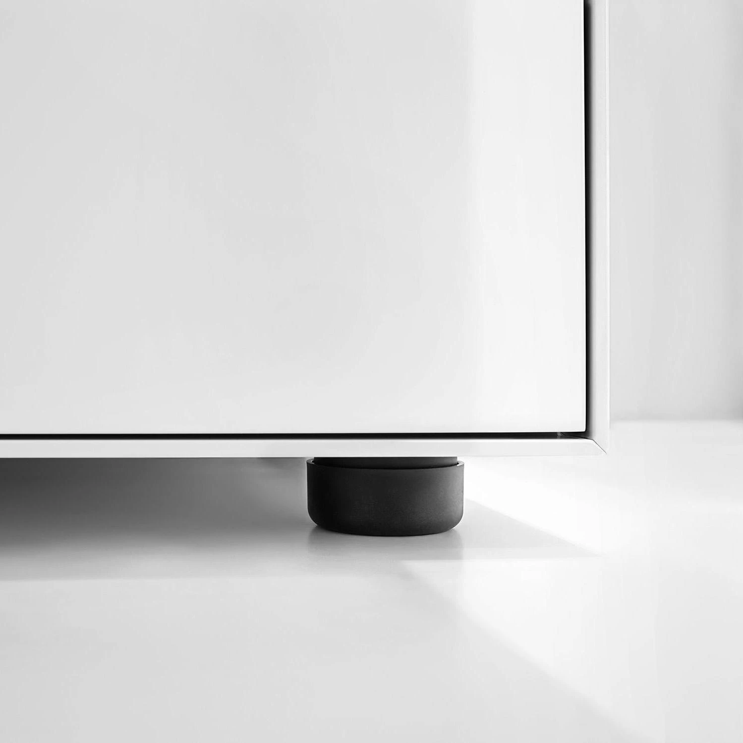 Das Nex Pur Box Sideboard/Kommode 240×77.5cm besitzt eine Breite von 240cm und eine Tiefe von 48cm. Mit einer Höhe von 77,5cm ermöglicht es nicht nur eine Nutzung als verschlossener Stauraum, sondern auch als funktionelle Abstellfläche für Bücher, Dekorationsobjekte oder Blumenvasen. Das Sideboard ist aus weißen, matt lackierten MDF-Platten gearbeitet. Die Kombifüße sind aus weichem Gummi gefertigt und erlauben das Abstellen der subtil wirkenden Kommode auch auf empfindlichen Oberflächen. Das Sideboard ist mit drei Schubladen zum Ausziehen versehen, die viel Platz für Kleidung, Accessoires, Unterlagen oder Krimskrams bieten. Zudem bilden diese ein attraktives Fugenbild, das einen minimalistischen Blickfang in Ihren vier Wänden bietet.